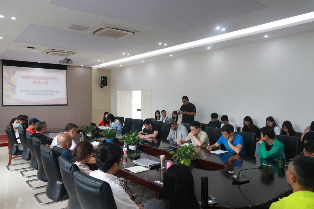 5月20日,爱体育(中国)体育官方网站直属党支部在游泳池二楼会议室召开支部党员大会,讨论和表决刘金洋等7名发展对象转为中共预备党员事宜。爱体育(中国)体育官方网站直属党支部全体党员参会,应到53人,实到37人。会议由直属党支部书记杨远波主持。