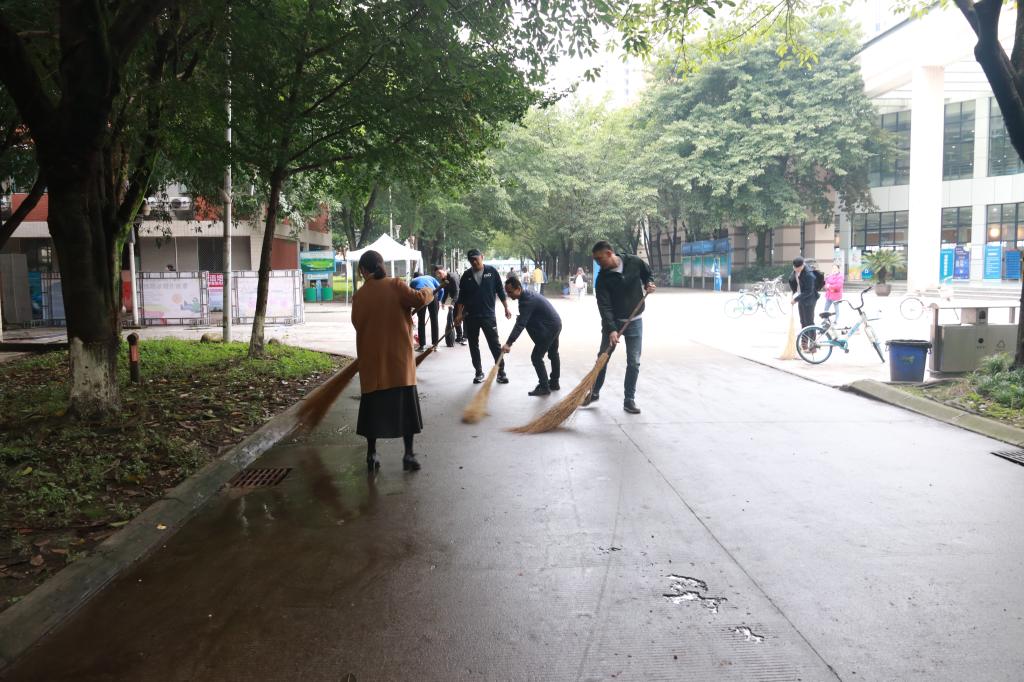 本次活动由杨院长和阴院长亲自带领师生党员对五谷堂公共区域进行了彻底的清理,对食堂入口及周边道路区域的树叶、纸屑及绿化带内杂草杂物进行了大扫除。整个活动分工有序,领导带头,全员参与,充分展现出爱体育(中国)体育官方网站师生不怕脏、不怕累、不怕苦的劳动精神。活动不仅营造了整洁卫生、舒适有序的学习工作生活环境,引导师生自觉养成卫生健康、守序文明的生活习惯,也极大地提高了师生的凝聚力和向心力。