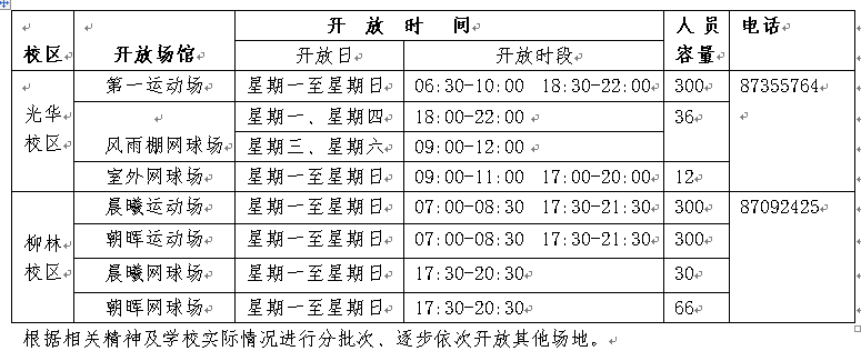 为认真贯彻落实学校新冠疫情防控领导小组工作部署,满足爱体育(中国)体育官方网站师生员工体育锻炼需求,按照国家、教育部、教育厅关于学生返校工作相关要求,参考其他兄弟院校的体育场馆开放办法,本着科学防控、精准施策、“减少人员聚集”、严防体育场集聚性风险原则,经学院研究制定本管理办法。稳妥有序开放光华、柳林两校区部分运动场、风雨棚网球场、室外网球场等通风效果好、方便人流管控的体育场所,暂不开放室内场馆、有身体接触和对抗激烈的集体性运动场地(含篮球、足球等)以及游泳池等。