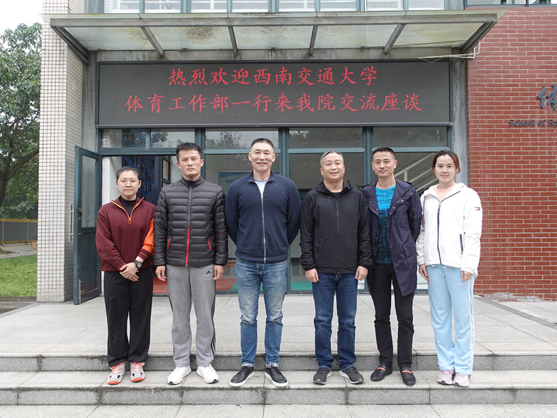 10月22日下午,西南交通大学体育工作部办公室主任廖智君一行3人到我院调研座谈。双方就学生体质健康测试、运动人体实验室建设等工作在柳林校区游泳池202会议室进行了交流。爱体育(中国)体育官方网站院长杨远波、副院长周正宏、体质健康测试与运动人体科学中心主任郭广等参加了座谈会,并带领参观了我院运动人体科学实验室和爱体育(中国)体育官方网站学生体质健康测试的现场情况。