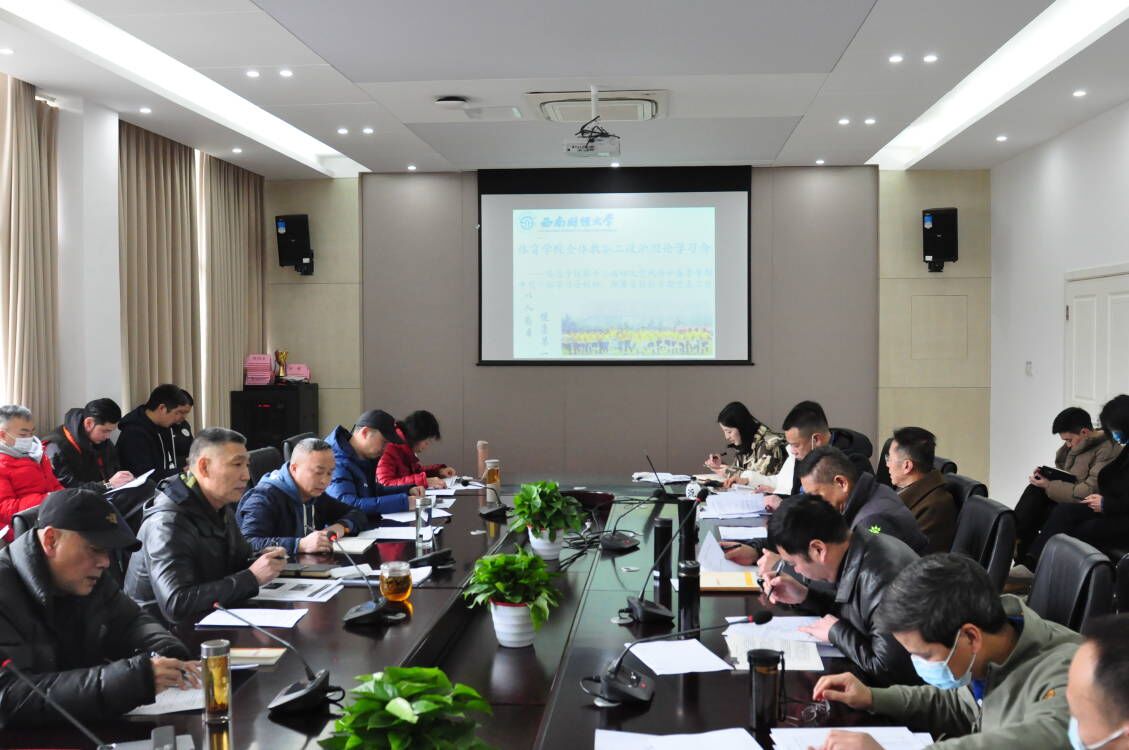 2月25日,爱体育(中国)体育官方网站在游泳池201会议室召开全体教职工大会暨政治理论学习会。学院全体教职工参加,会议由杨远波院长主持。