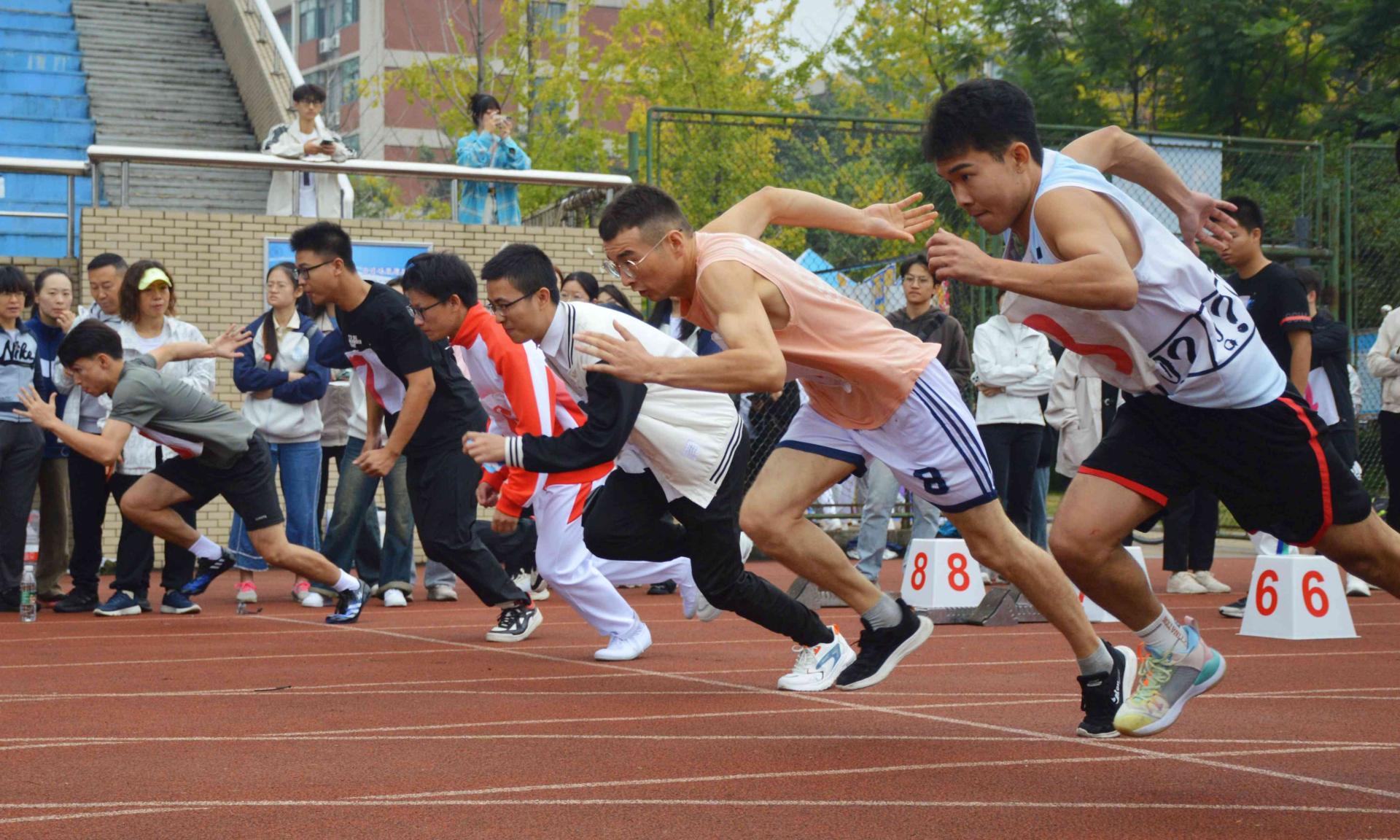 本届运动会设有田径、网球、乒乓球、羽毛球、台球、定向越野、彩虹跑、集体跳绳、拔河和仰卧起坐等40个竞赛项目,还新增了踢毽项目和体育嘉年华活动,激发了全校的参与热情。运动健儿们用青春挥洒汗水,以不怕艰苦、勇往直前、奋勇拼搏的体育精神,把“更快、更高、更强——更团结”的奥林匹克格言凝聚成实现中华民族伟大复兴的精神力量。全体师生以饱满的热情、昂扬的精神风貌积极投身体育运动中,奋勇争先、超越自我,让体育运动点燃热情,绽放青春风采。