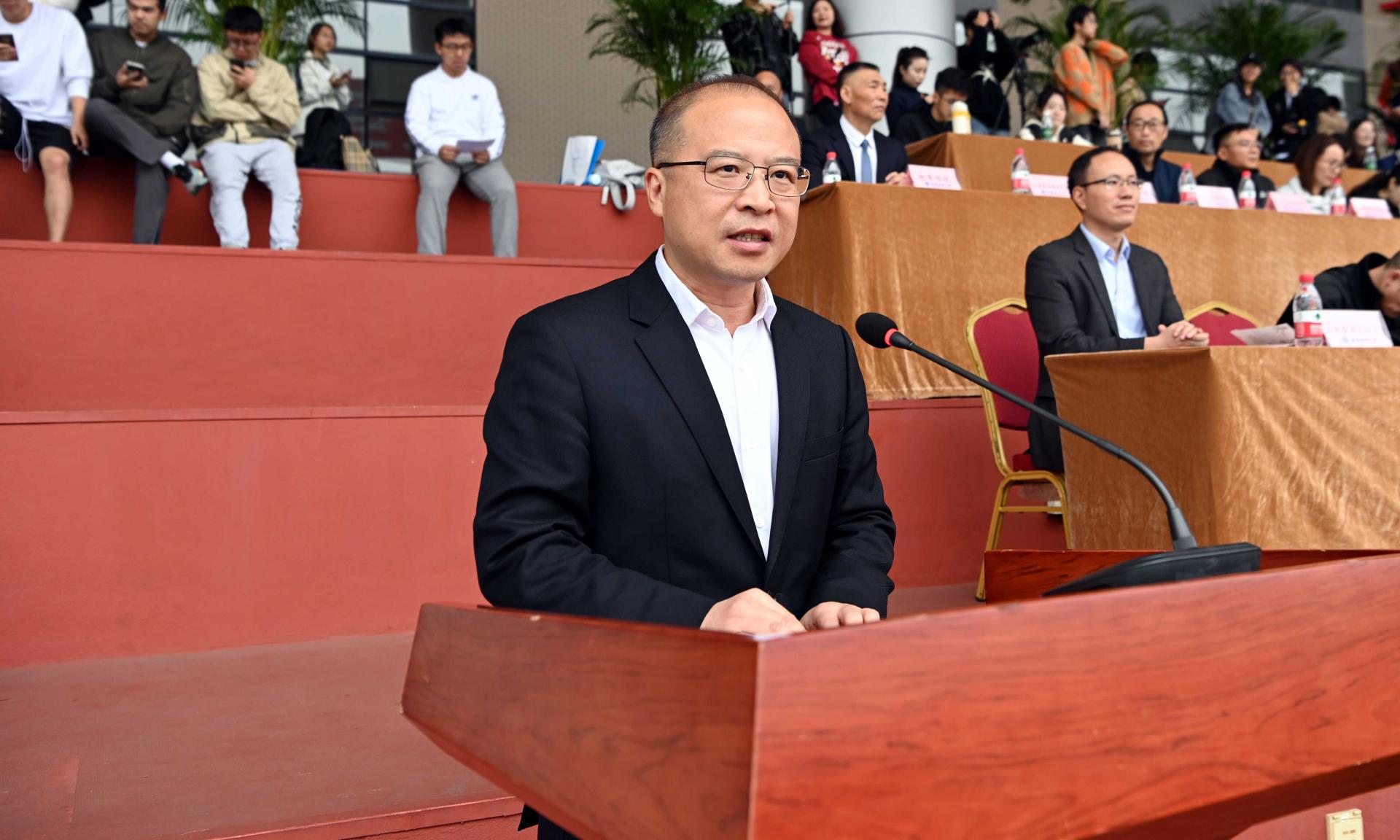 27日下午,运动会圆满结束,桂富强致闭幕辞。他希望同学们不断涵养堪当民族复兴重任的志气、骨气和底气,牢固树立健康第一的理念,养成良好的锻炼习惯,常邀同窗伙伴相聚绿茵场,共同奏响“西财梦”与“强国梦”的协奏曲。