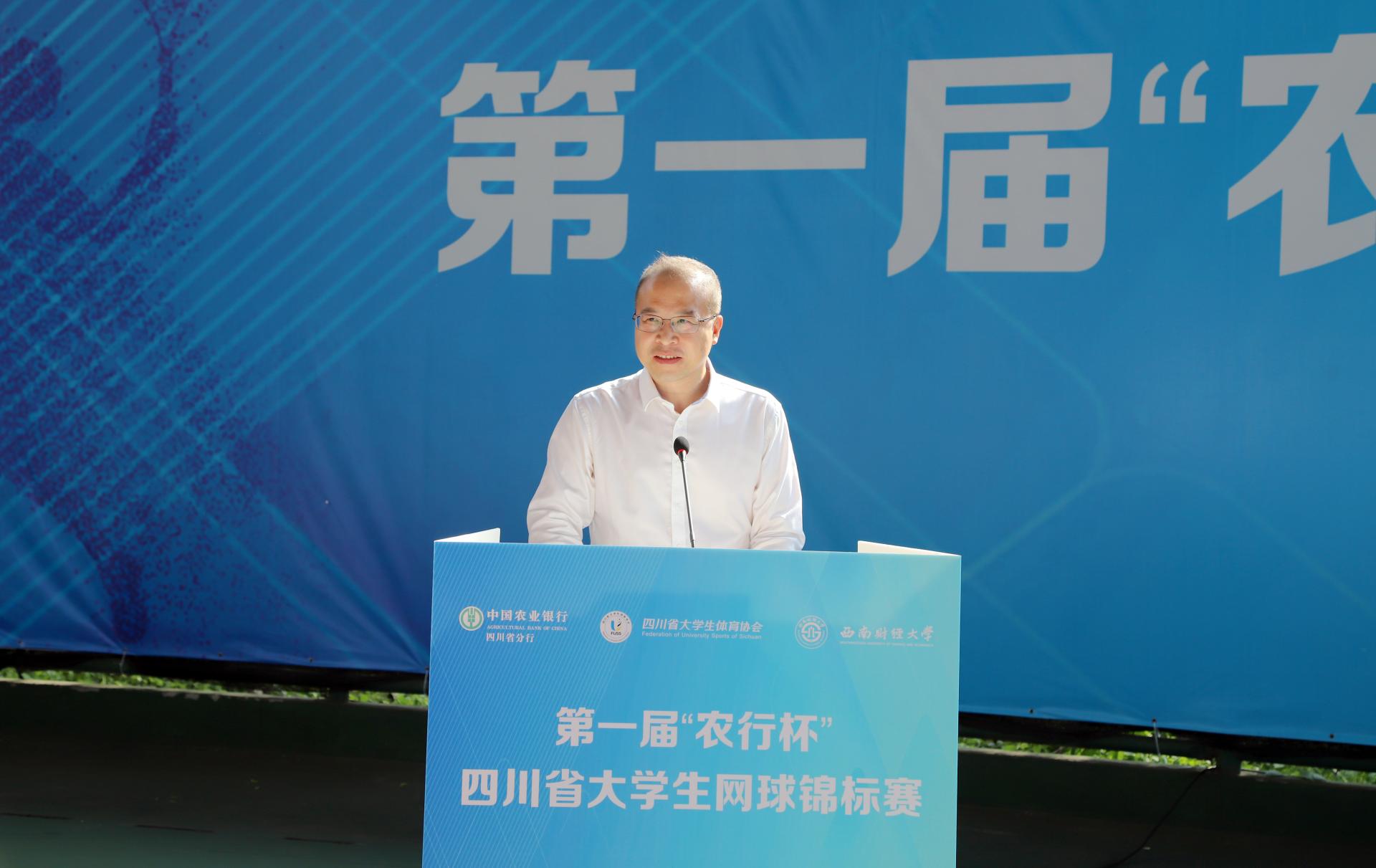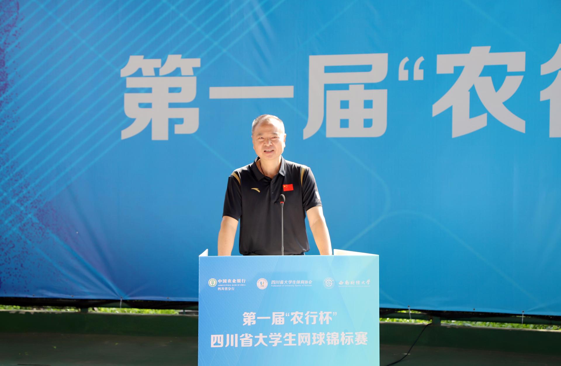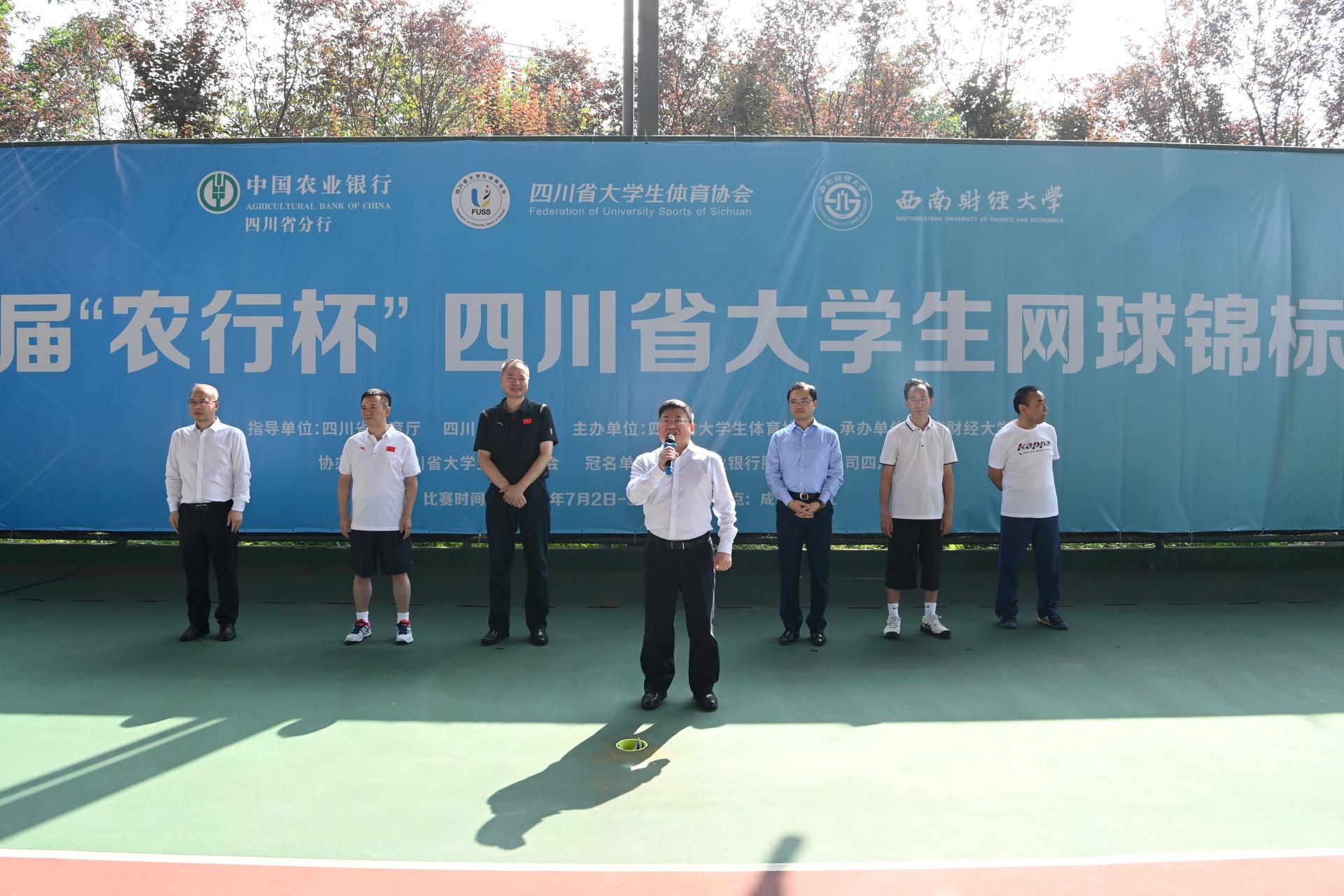 7月2日、3日,由四川省教育厅、四川省体育局指导,四川省大学生体育协会主办,西南财经大学承办,中国农业银行四川省分行冠名的第一届“农行杯”四川省大学生网球锦标赛在爱体育(中国)体育官方网站柳林校区举行。来自全省的47支代表队和700余名运动员、教练员、裁判员以及广大志愿者参与其中。四川省大学生体育协会总顾问、成都爱体育(中国)体育官方网站原党委书记刘青,四川省高等院校网球协会主席、成都信息工程大学原党委书记赖廷谦,中国农业银行四川省分行党委书记、行长刘加旺,中国大学生体育协会网球分会副主席、四川大学副校长张林教授,成都市网球协会副主席、中国农业银行成都分行调研员贺杰,爱体育(中国)体育官方网站党委书记赵德武,党委常委、副校长李永强出席开幕式。我院院长杨远波主持开幕式。