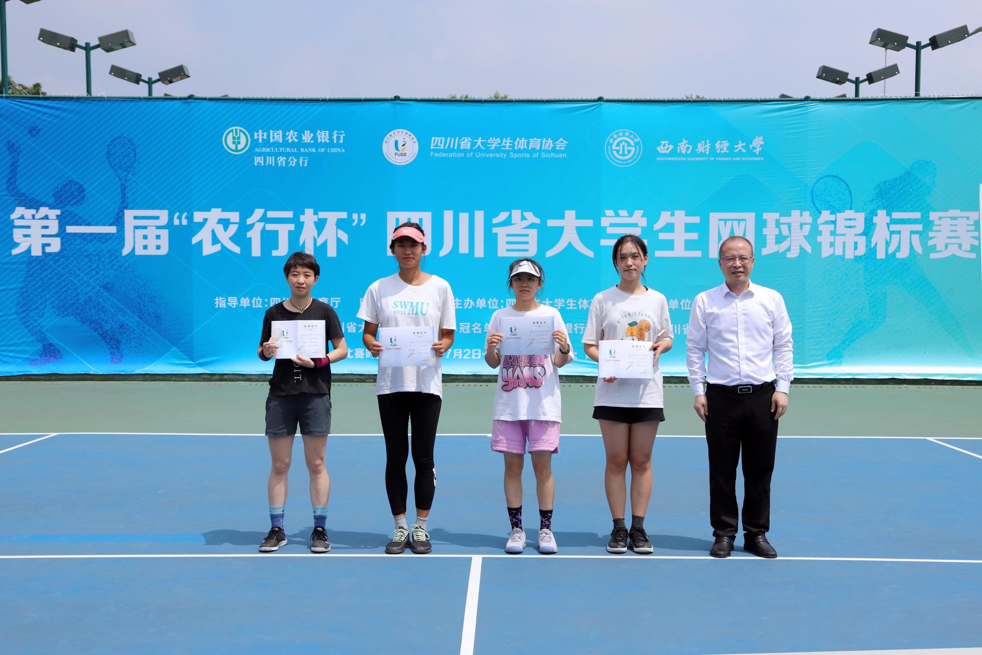 本次比赛分教职工组、学生组,总共600余场比赛,经过两天激烈的比赛,网球健儿们在灼灼烈日下以球会友、释放激情、燃烧斗志,践行“健康第一”的理念,角逐出21项冠军。其中,爱体育(中国)体育官方网站党委副书记马骁、四川省干部函授学院党委书记代光举荣获校长乙组双打冠军,党委常委、副校长欧兵、四川广播电视大学原党委书记罗大玉荣获校长乙组双打第四名,孔星宇、张锐老师荣获教职工女子双打第三名,邓琳三同学荣获女子乙组单打第三名的好成绩。