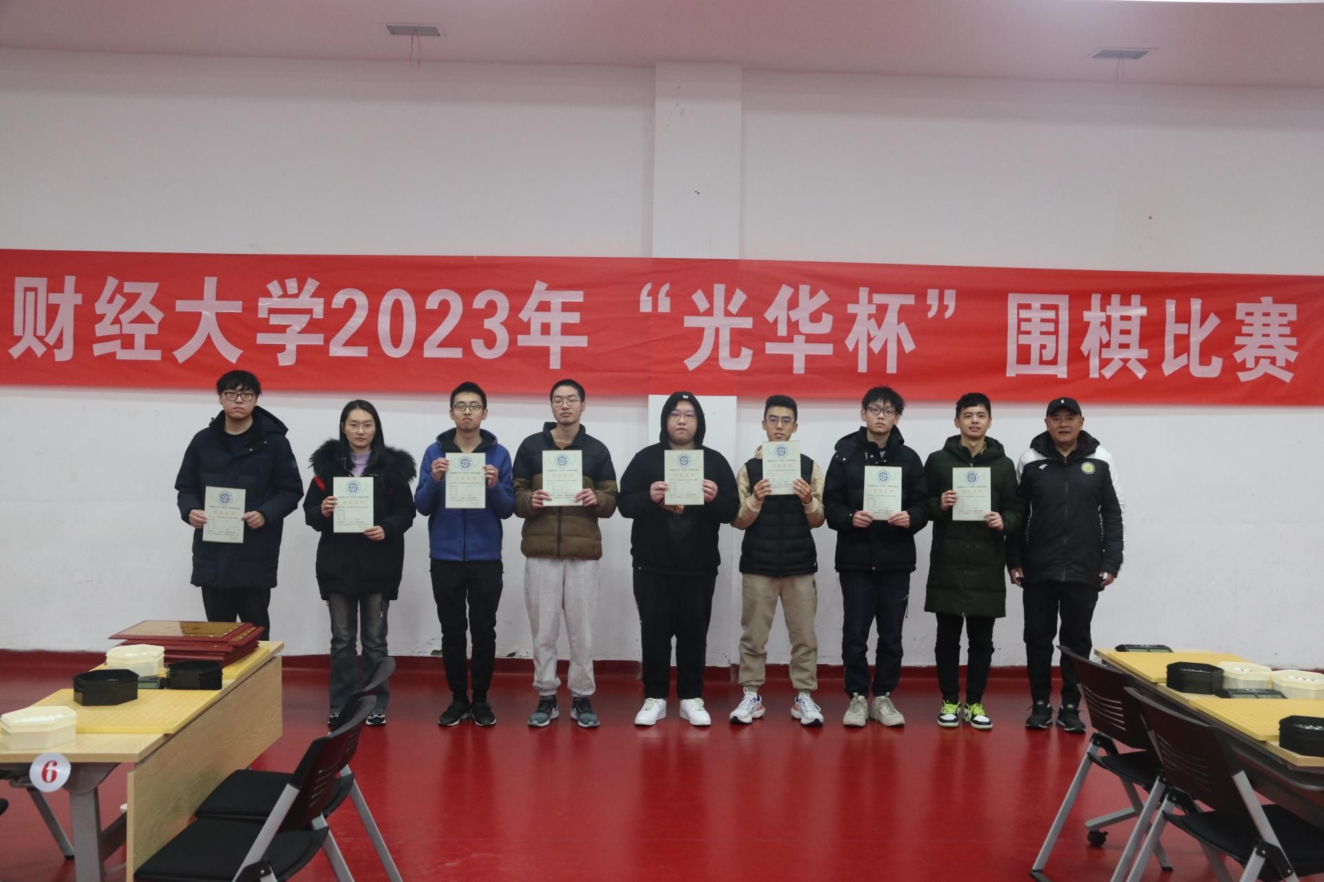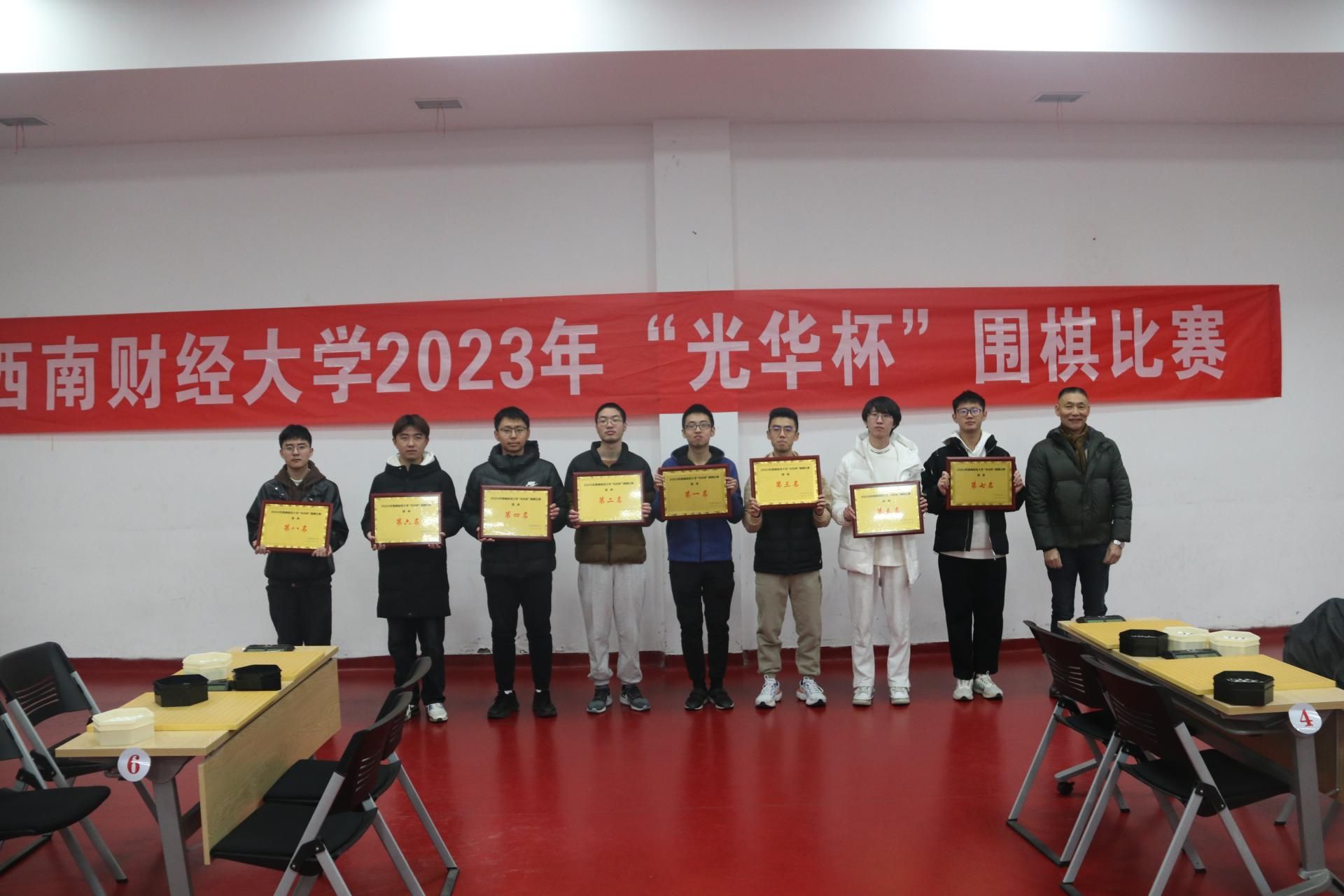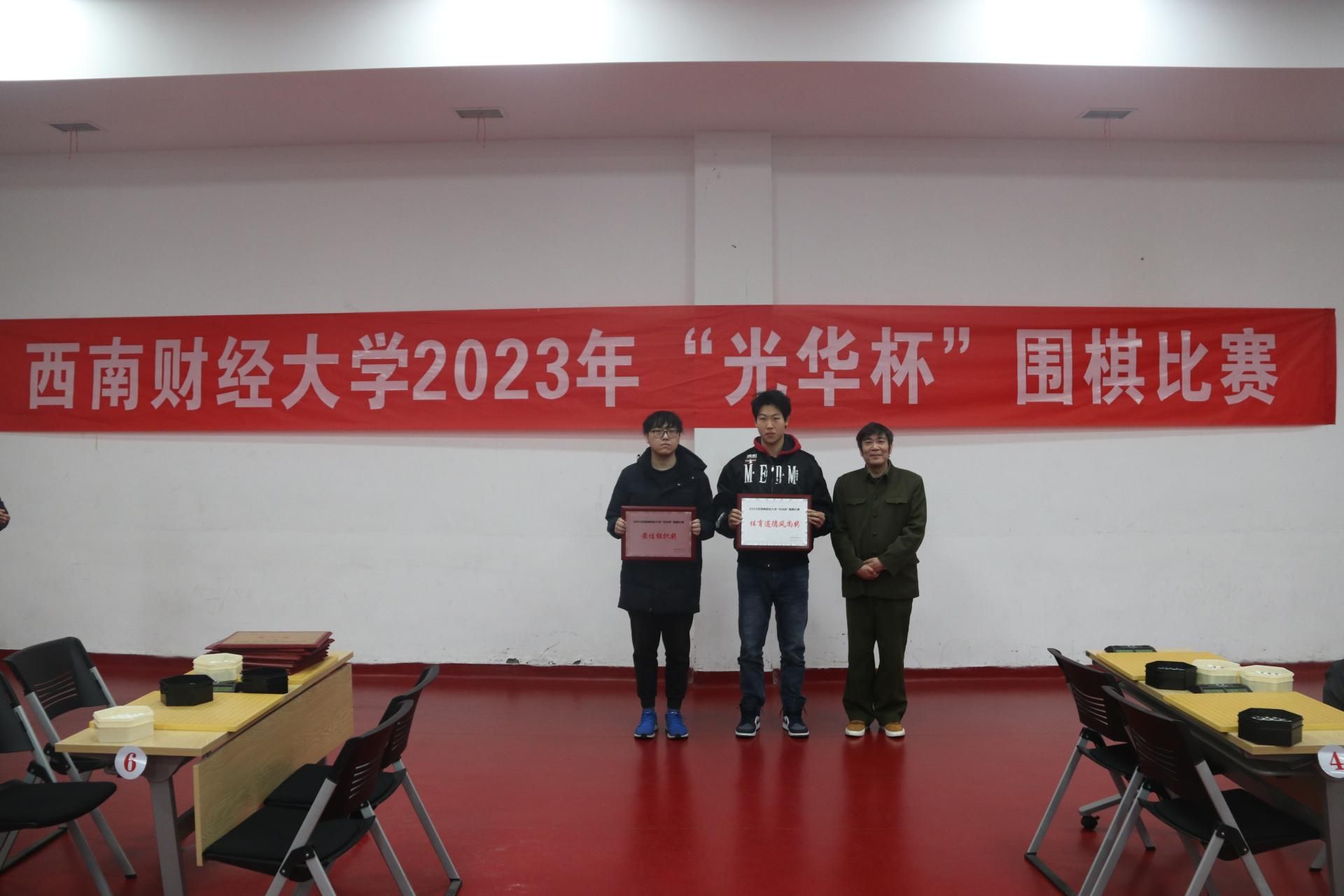 12月17日下午,“礼赞新时代·奋进新征程,迎百年校庆·铸西财辉煌” 2023年西南财经大学“光华杯”首届围棋比赛颁奖仪式在柳林校区光华体育馆举行。爱体育(中国)体育官方网站杨远波院长、阴涛副院长出席并为获奖单位及个人颁奖。