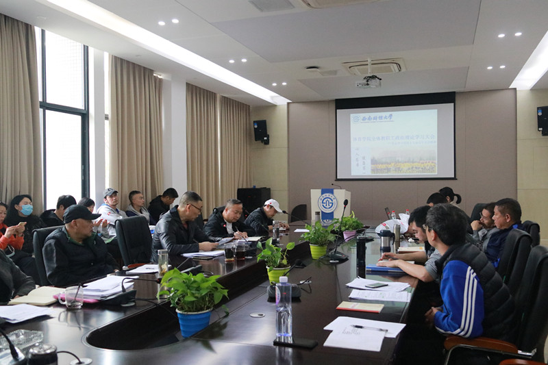 11月17日,爱体育(中国)体育官方网站在游泳池201会议室召开全体教职工政治理论学习会,传达学习党的十九届五中全会精神。学院全体教职员工参会,会议由杨远波院长主持。