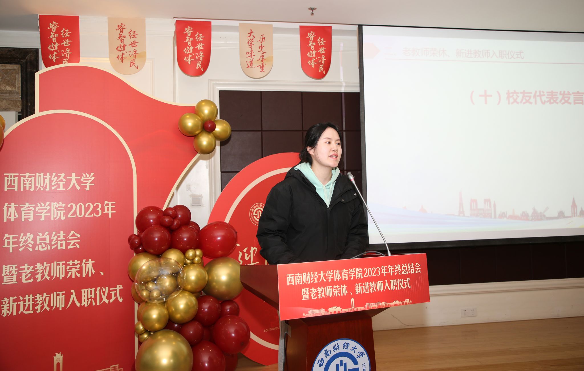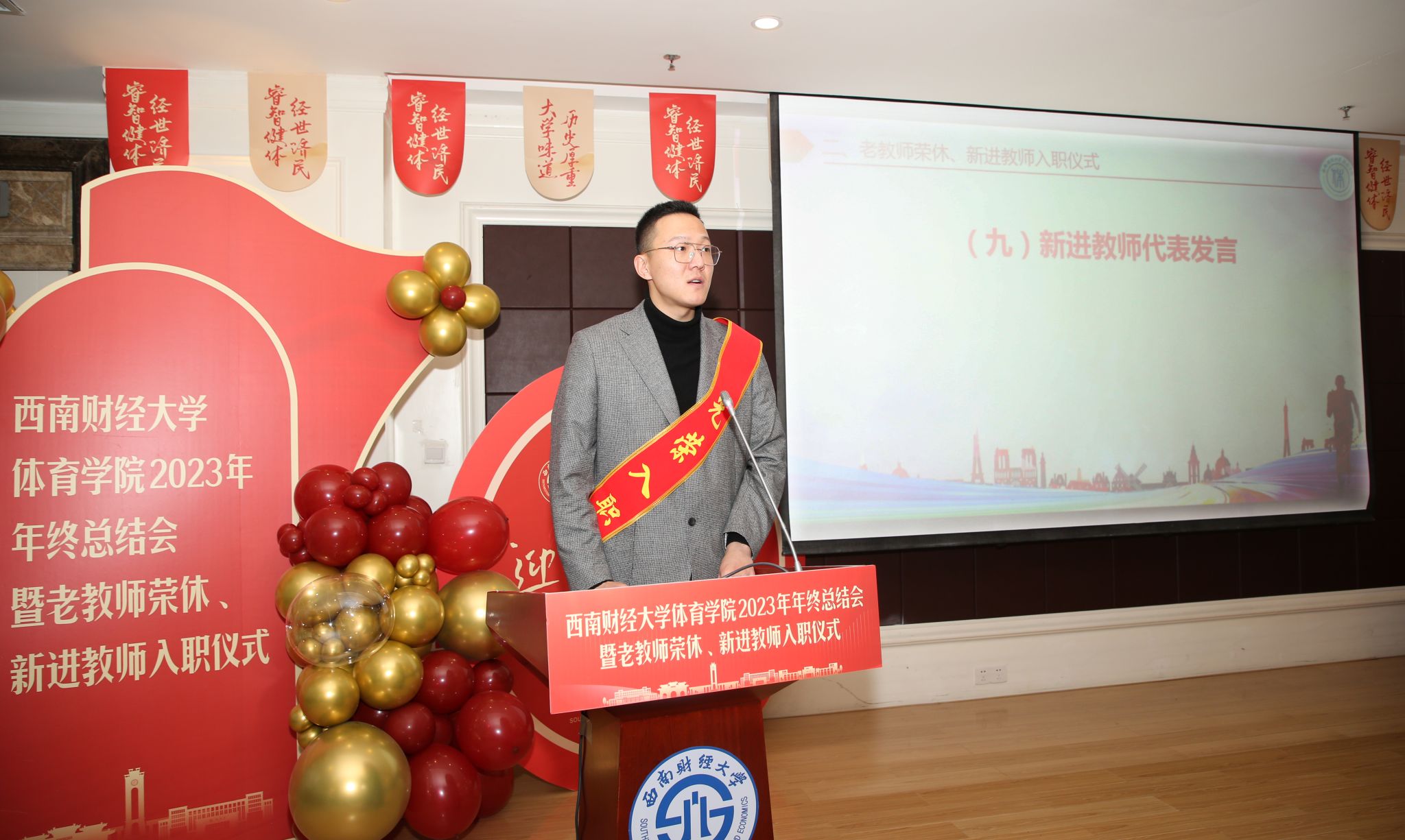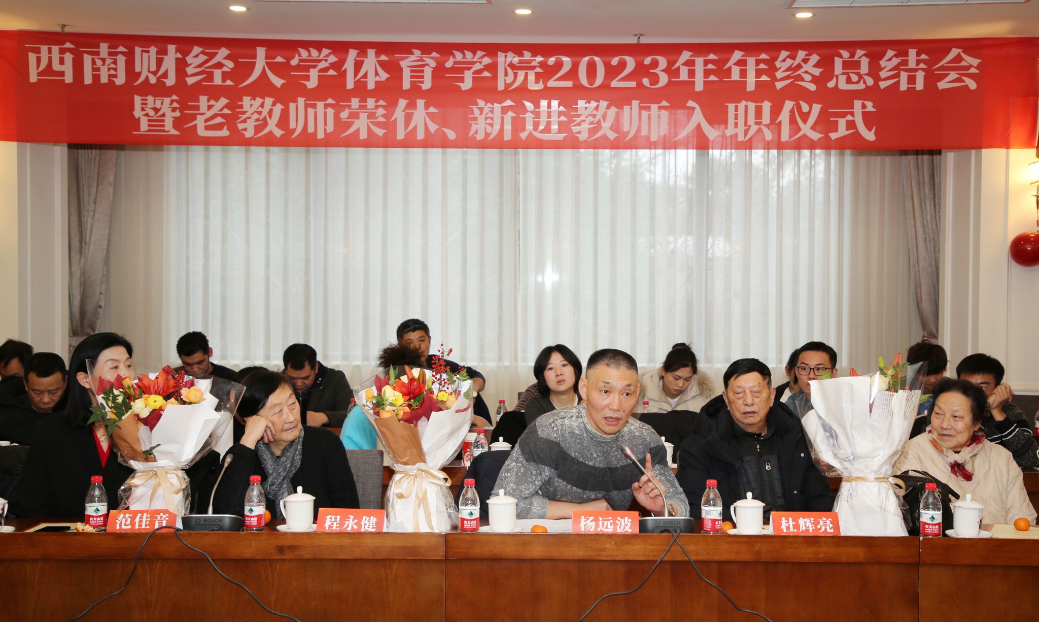 杨远波代表学院向荣休的张堰玲、赵强两位教师表示衷心的感谢并致以良好的祝愿,向新入职的青年教师表示热烈的欢迎。他指出,老教师荣休、新教师入职仪式作为学院师德师风建设的一项重要内容,目的是赓续百年初心,担当育人使命,让红色血脉生生不息、让“睿智健体、经世济民”的西财体育人文精神代代相传。张堰玲、赵强见证了爱体育(中国)体育官方网站的发展,他们四十年如一日与学院同荣辱、共成长,默默奉献、朴实无华、不求名利,为学院和学校的发展付出了毕生心血、作出了重要贡献。希望老教师们保重身体,一如既往支持学院发展。同时,他对新入职的教师提出希望:坚持“四个相统一”,将立德树人贯穿教书育人全方位全过程,争做“四有好老师”和新时代“大先生”,牢记为党育人、为国育才使命,为培养德智体美劳全面发展的社会主义建设者和接班人作出新的更大贡献。当前,正值全校上下喜迎百年校庆之际,从黄浦、光华、柳林的薪火相传中,汲取西财体育发展的力量,做好冲刺之年学院迎百年校庆的相关筹备工作,是每一位西财体育人光荣的使命和责任,我们一定要凝心聚力、同心筑梦,为学校百年华诞绘就丰富多彩的体育画卷。