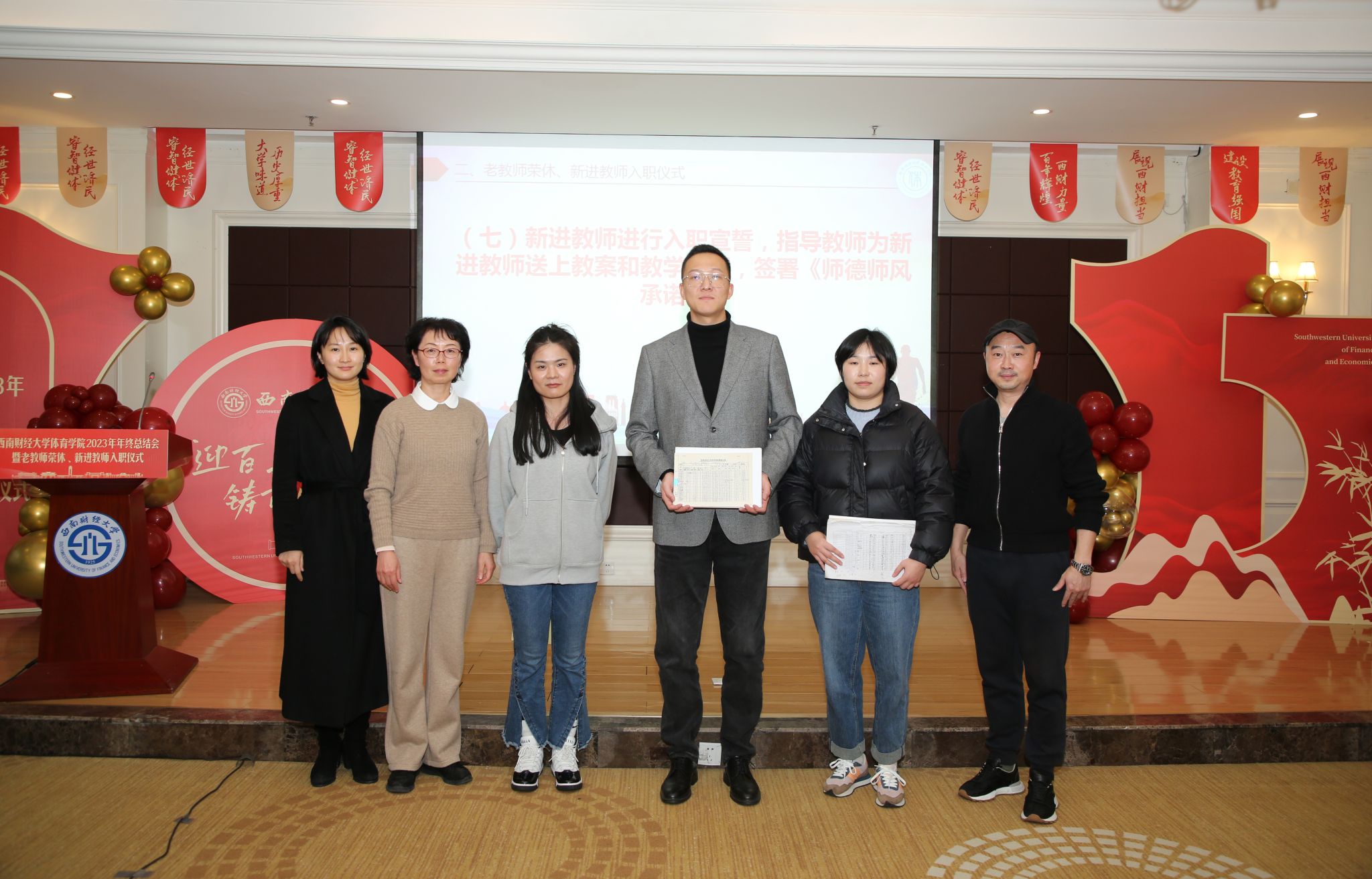 新教师入职仪式上,杨远波、周正宏和范佳音为新教师佩戴“光荣入职”绶带,指导教师在“传帮带”环节向新教师送上教案等“教学大礼包”,并传授教学经验。新教师在校旗下签订《师德师风承诺书》,并进行入职宣誓。徐浩然代表新教师发言。