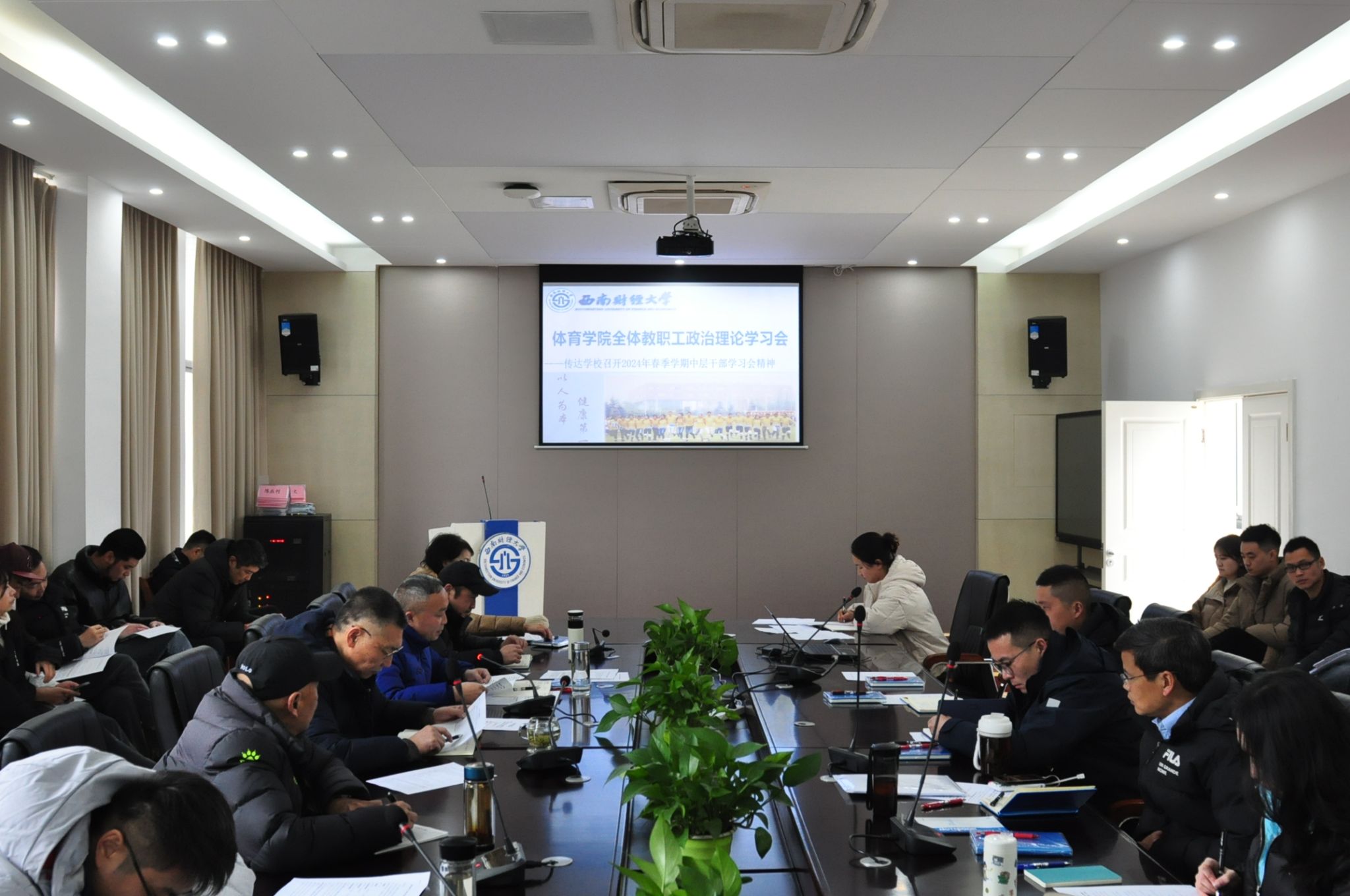 2月27日上午,爱体育(中国)体育官方网站在游泳池201会议室召开2023—2024学年第二学期第一次全体教职工大会。爱体育(中国)体育官方网站院长杨远波,党委书记周正宏,副院长阴涛、陈丛刊,党委副书记、纪委书记李治及学院全体教职员工参加。会议由杨远波主持。