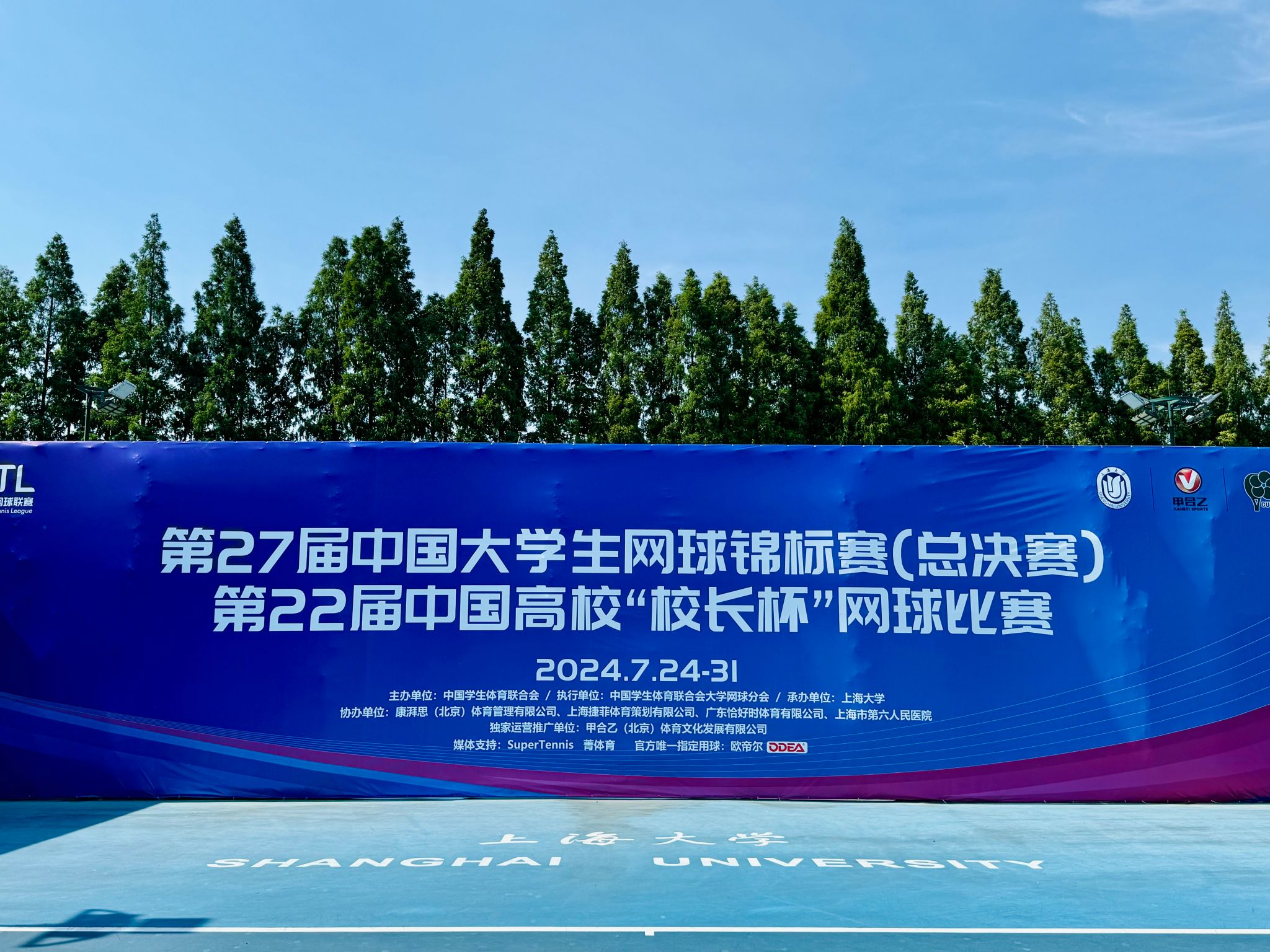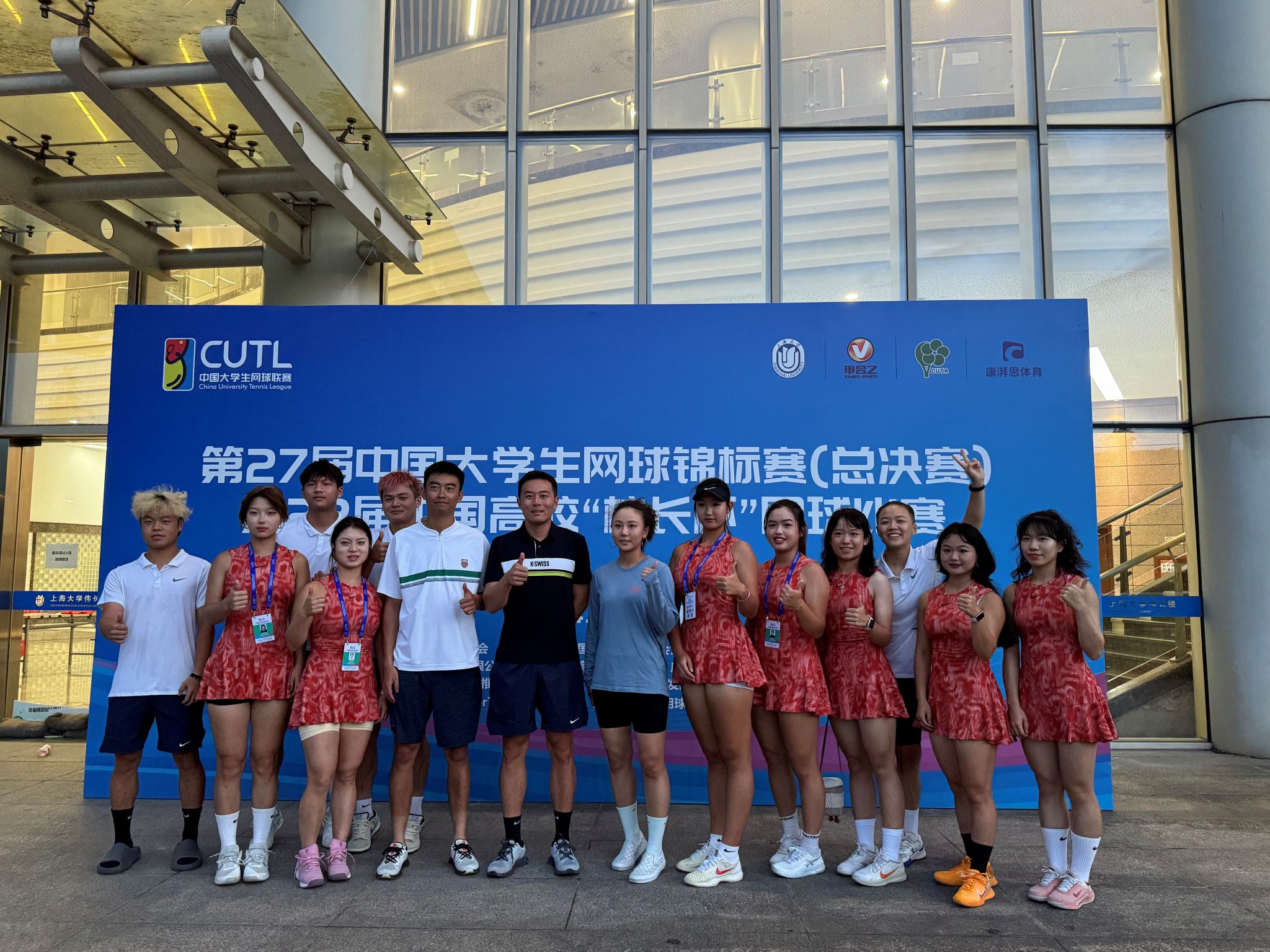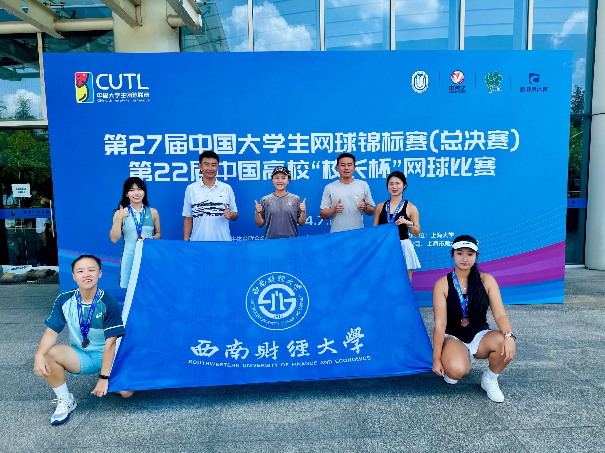 7月22日-8月1日,第27届中国大学生网球锦标赛(总决赛)在上海大学(宝山校区)举行。中国大学生网球锦标赛是我国大学生层面最顶级的网球赛事,经过八大分区赛的激烈角逐,在本届中国大学生网球锦标赛(总决赛)中,共有来自全国132所高校的915名同学成功晋级总决赛。参赛规模创历史新高!爱体育(中国)体育官方网站网球队在前期分区赛上表现突出,成功晋级总决赛,11名运动员代表学校参赛,孙巨杉、施泓宇、孔星宇担任教练。经过八天的激烈角逐,西财健儿们在强手如林的赛场上顽强拼搏,团结奋进,获得女子普通高校甲组双打季军和女子高水平乙组双打季军的好成绩,充分展现了西财学子的精神风貌和青春风采,为即将到来的西财百年华诞献礼!