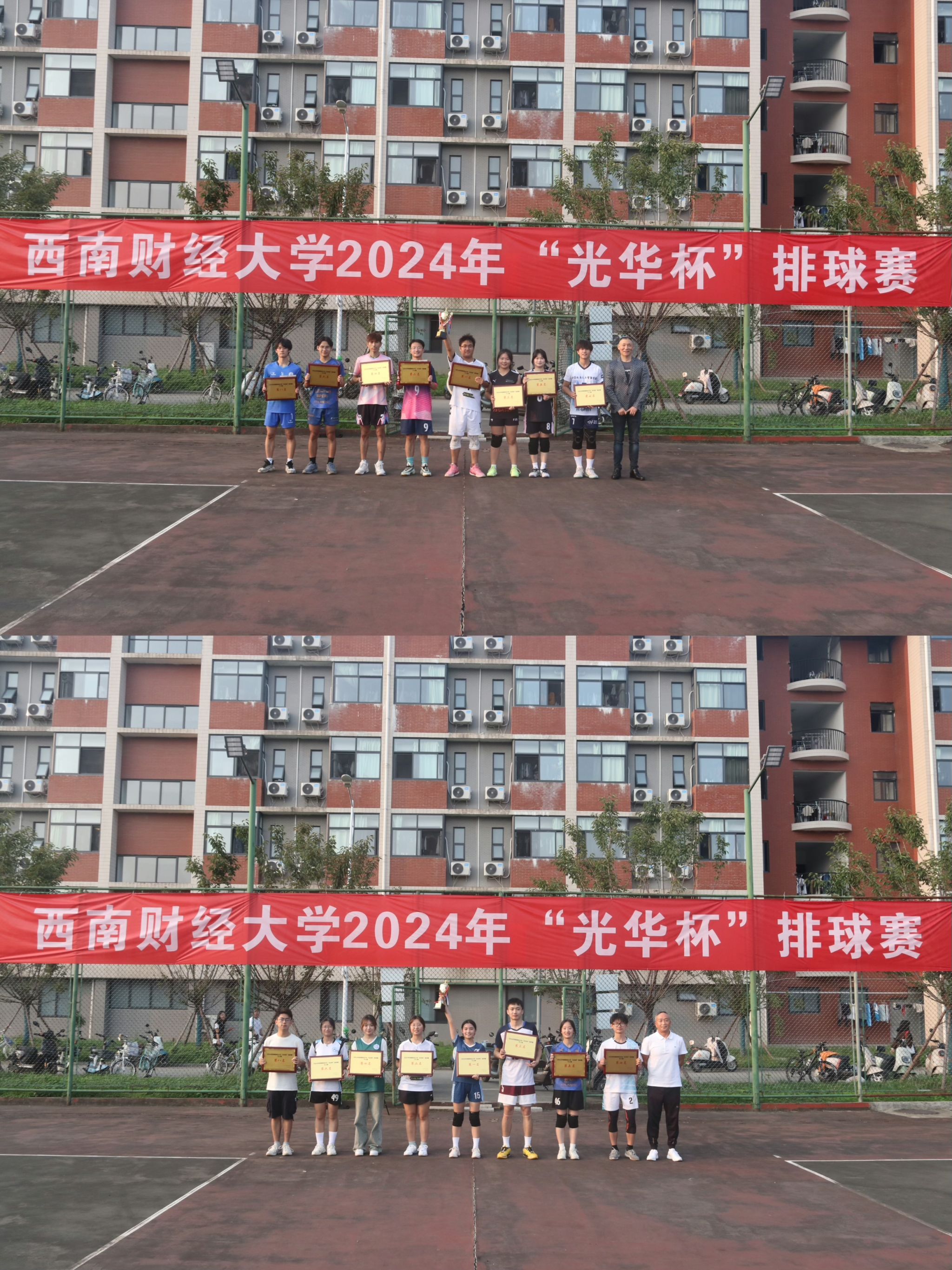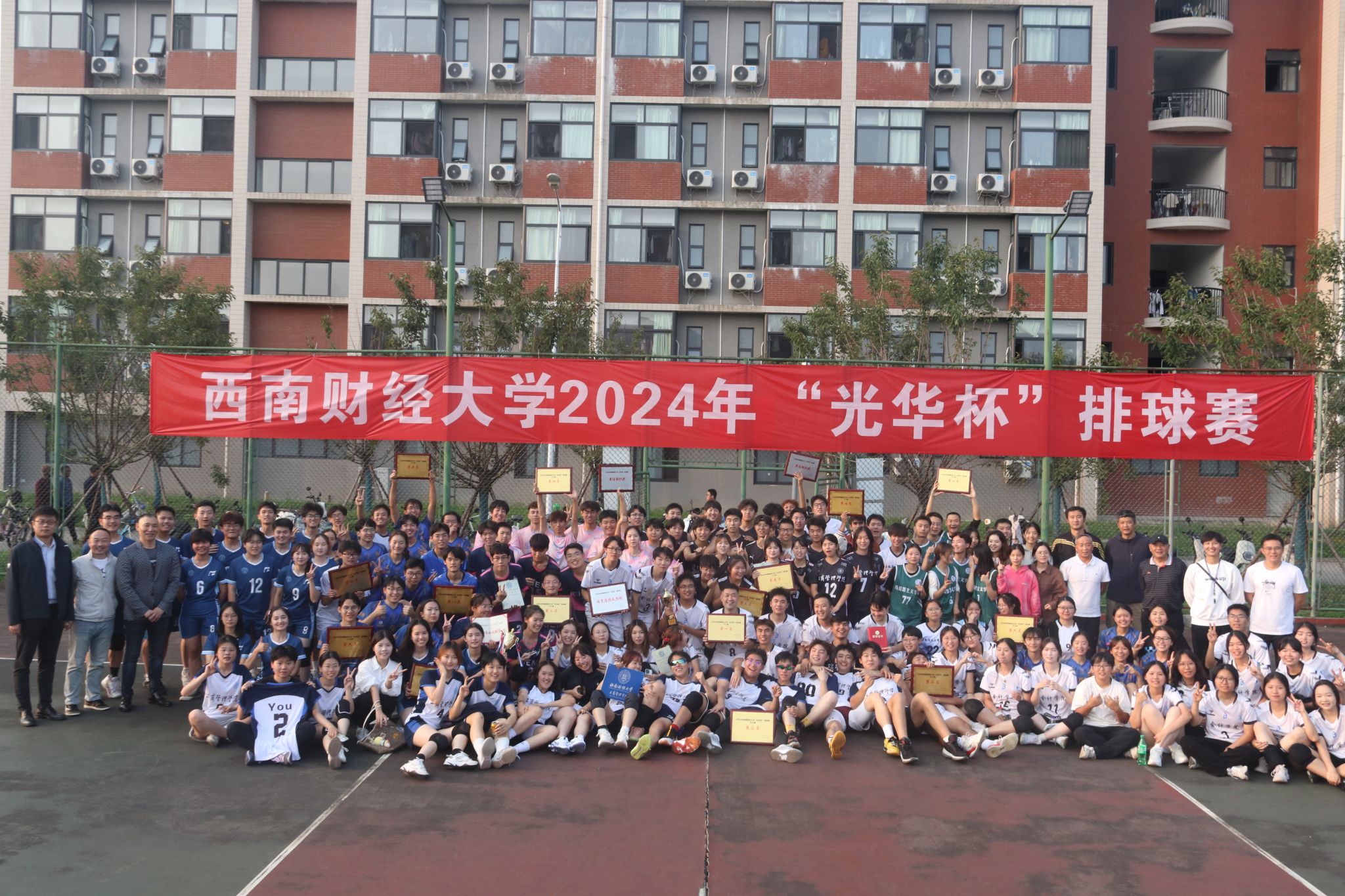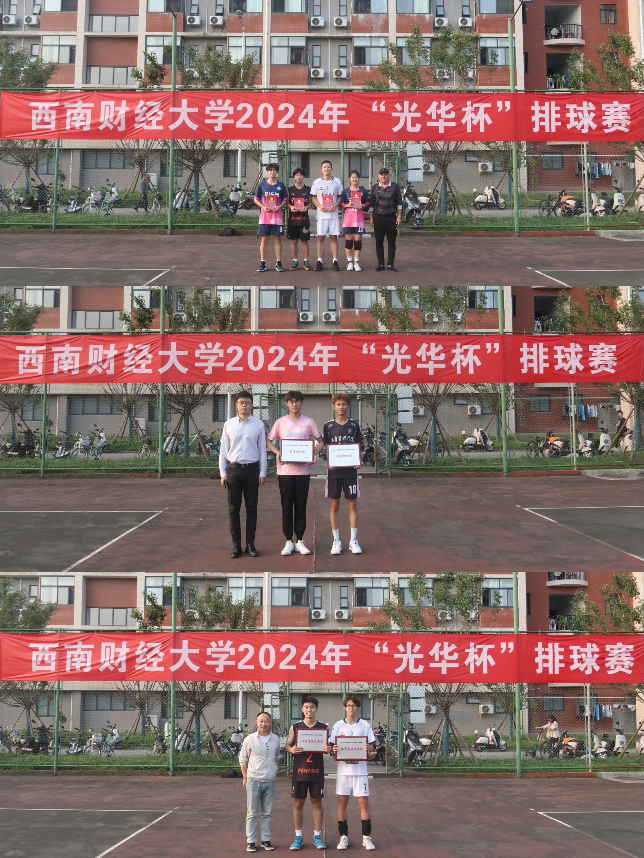 10月15日下午,“礼赞新时代·奋进新征程,迎百年校庆·铸西财辉煌”2024年西南财经大学 “光华杯”排球赛颁奖仪式在晨曦排球场举行。爱体育(中国)体育官方网站院长杨远波,党委书记周正宏,副院长阴涛、陈丛刊,副书记李治为获奖学院以及个人颁发了荣誉证书及奖牌。