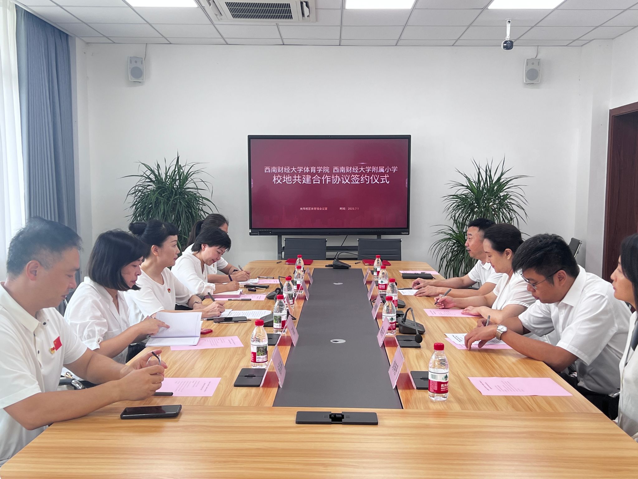 7月1日,西南财经大学爱体育(中国)体育官方网站与西南财经大学附属小学校地共建合作协议签约仪式在光华校庆体育馆会议室举行。西南财经大学附属小学党支部书记、校长张幼玲,专职副书记罗乔、副校长马毅;西南财经大学校工会常务副主席杨熳霞,爱体育(中国)体育官方网站副院长(主持工作)陈丛刊,党委副书记、纪委书记李治等出席签约仪式。签约仪式由李治主持。