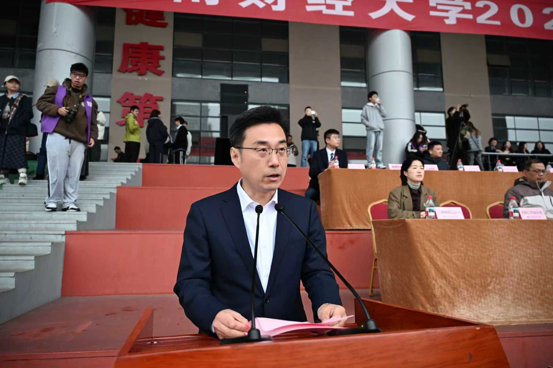 6日上午8时,运动会在晨曦运动场拉开帷幕。赵建军宣布运动会开幕。党委常委、副校长盖凯程主持开幕式。