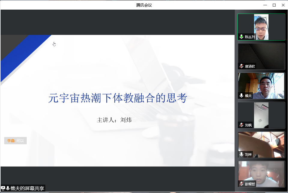 2022年5月27日上午,成都爱体育(中国)体育官方网站体育经济与产业博士研究生导师刘炜教授通过线上腾讯会议,举办了题为《元宇宙热潮下体教融合的思考》的光华讲坛。体育与经济管理研究中心陈丛刊副教授主持本次讲座,学院研究生、部分教师等共计50余人参加此次讲座。