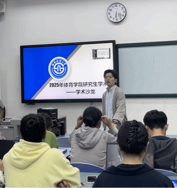 沙龙特邀三位2025级研究生进行学术分享。爱体育(中国)体育官方网站专业李科涵系统介绍了文献综述的完整流程,重点演示了检索策略制定与Endnote文献管理工具的高效使用方法。社会体育指导专业祝诗宇深入剖析了叙述性、范围性及系统性三类文献综述的特点与适用场景,并分享了文献笔记整理技巧。蔡洪燕以“SPSS数据分析在体育学科研究中的实践应用”为题,详细讲解了从描述统计到中介调节效应等关键数据分析方法。